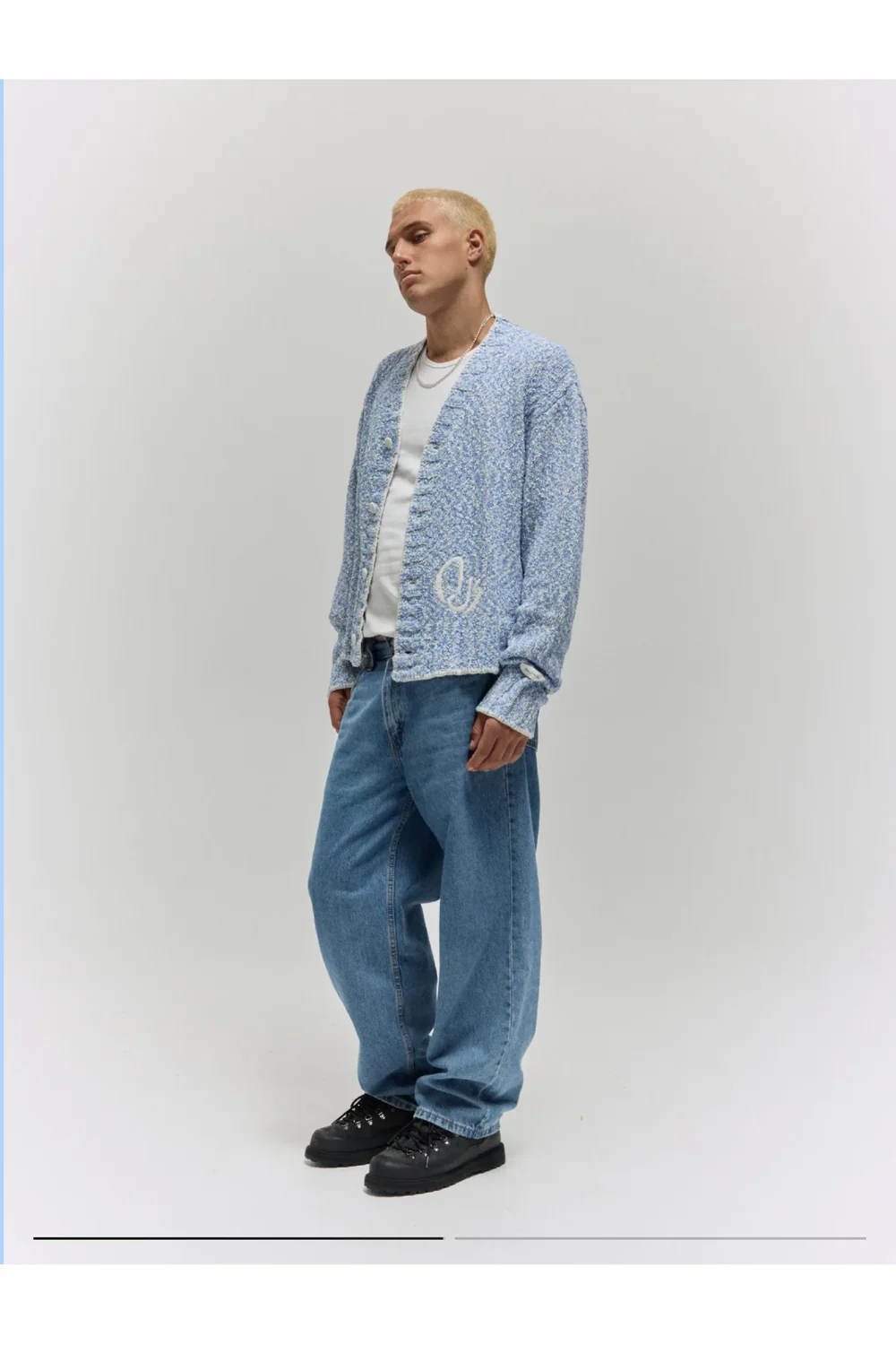 Both models are 6'0 and wearing large. This knit runs about half a size big so if you're in between sizes we recommend you size down.