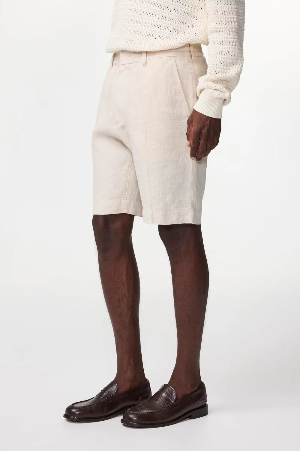 Dress shorts crafted from premium European linen with a drapey handfeel and crisp finish. Features an elasticated waistband with hook and bar closure plus an inside drawstring for adjustable comfort.
